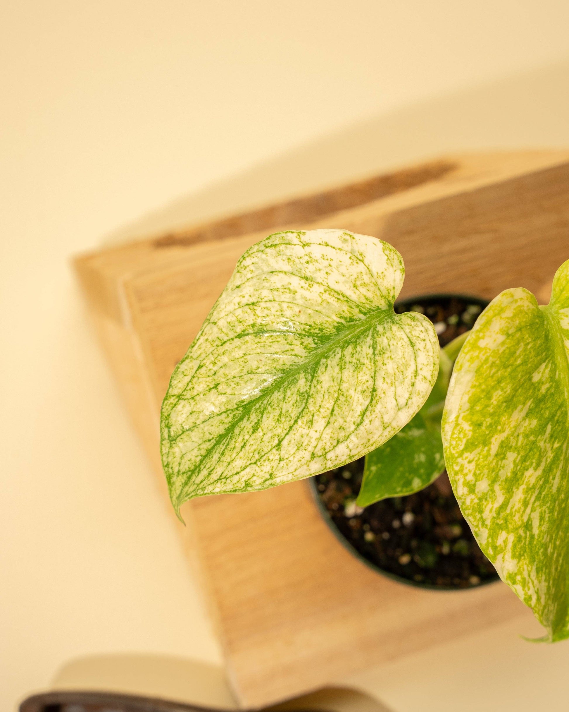 A true collector’s gem, Monstera ‘Mint’ boasts stunning marbled leaves in soft mint-green and creamy white. As it matures, its iconic fenestrations (leaf splits and holes) will emerge, revealing its full tropical beauty. This rare large-form deliciosa climbs with support and thrives in bright, stable indoor conditions. 3.5" Growers Pot