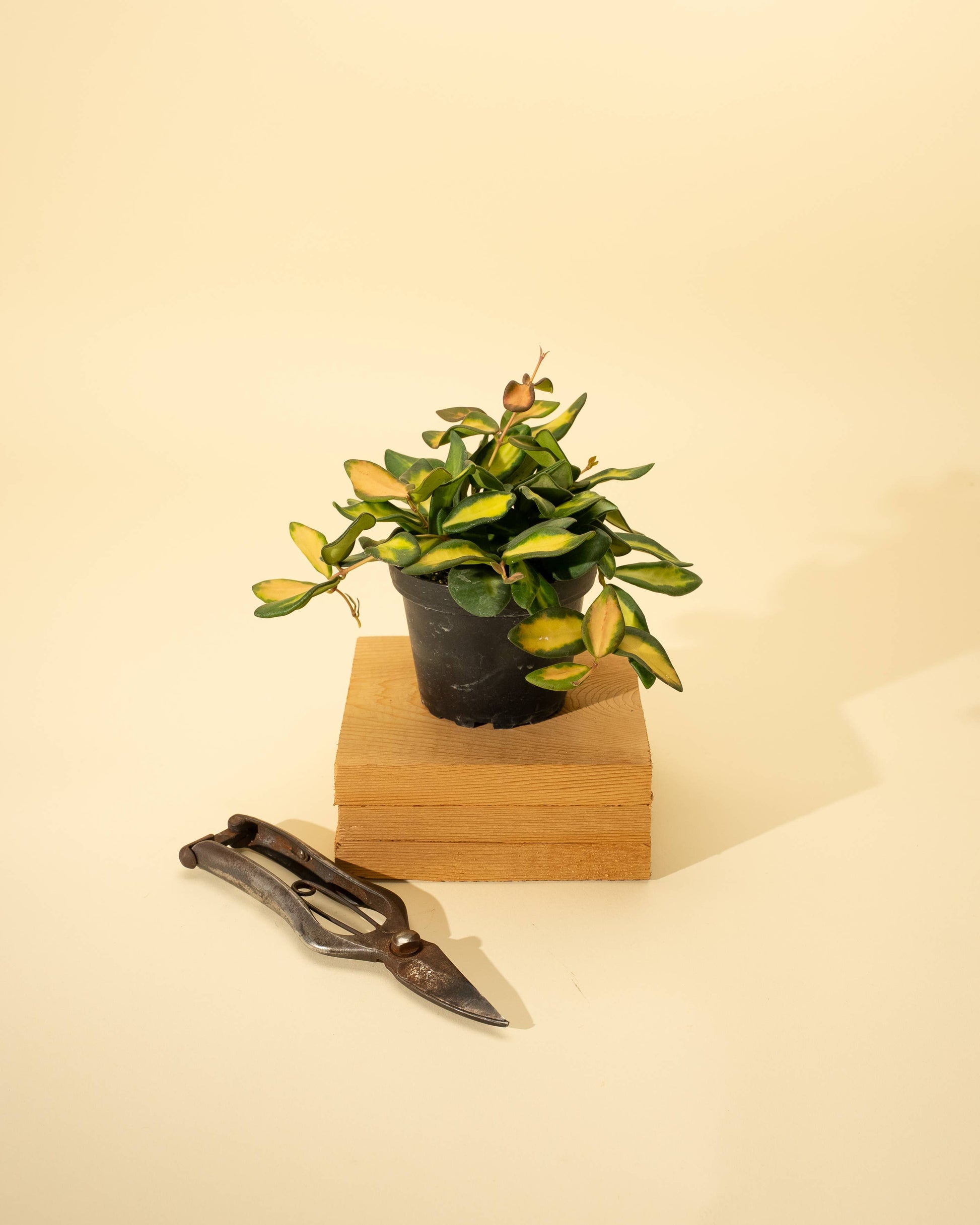 A standout variety with thick, fuzzy leaves adorned in creamy variegation, the Hoya ‘DS-70’ brings soft texture and subtle contrast to any space. With the right care, it may reward you with clusters of charming, star-shaped blooms. 4" Growers Pot