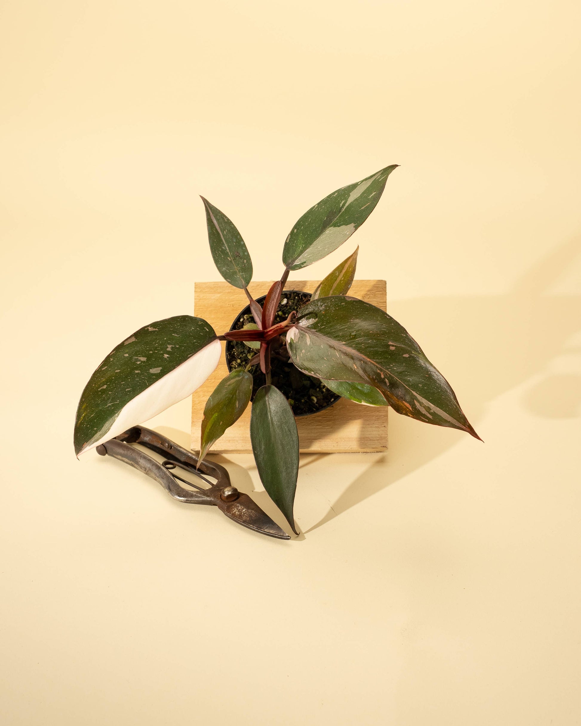 Philodendron 'Red Anderson', often called 'Pink Knight', is a rare hybrid prized for its stunning pink, green, white, and burgundy variegation. Each leaf is unique, often blending rosy splashes with deep green and creamy tones. With a climbing growth habit and bold color contrast, this philodendron is a true statement piece for collectors and rare plant lovers.